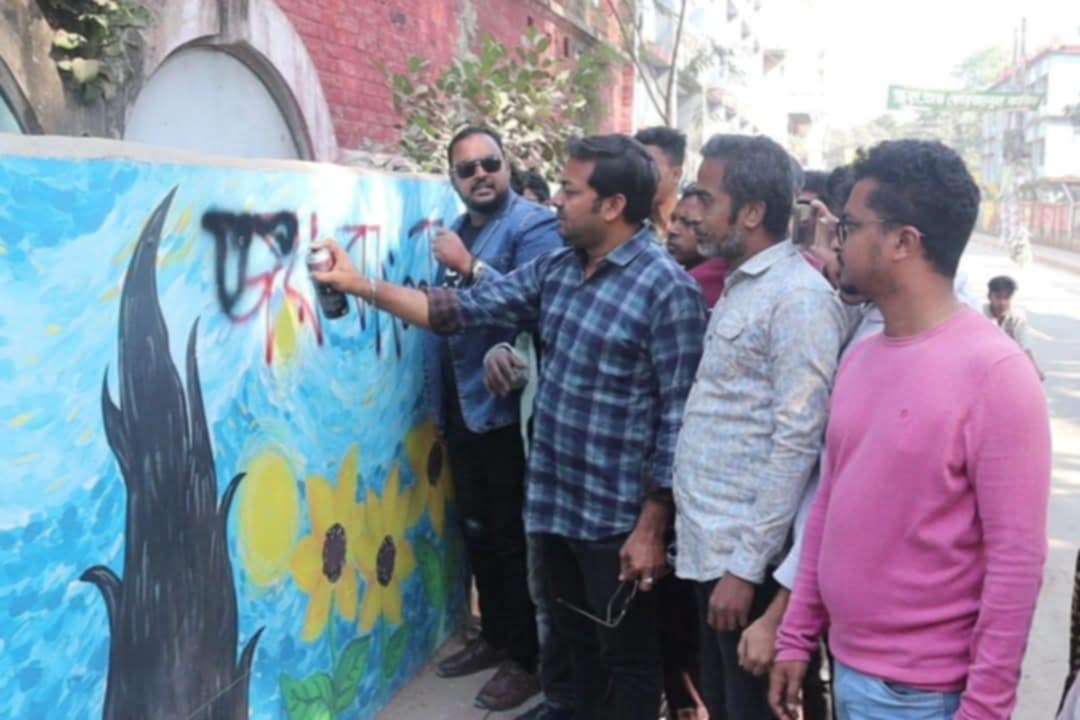 ছাত্রজনতার আন্দোলনের মধ্য দিয়ে গত ৫ আগষ্টে আওয়ামী লীগ সরকারের পতন হয়। সেদিন আনন্দ উল্লাসে মেতে উঠেছিল দেশের বিভিন্ন শ্রেনী-পেশার মানুষ। এ আন্দোলনে গুরুত্বপুর্ন ভূমিকা পালন করেছিল বৈষম্য বিরোধী ছাত্ররা। সে সময় অসংখ্য হতাহতের ঘটনা ঘটে। আর এসব হতাহতের ঘটনার স্মৃতিচিহ্ন হিসেবে রং-তুলি দিয়ে দেশের বিভিন্ন স্থানের ন্যায় নওগাঁ শহরের বিভিন্ন স্থাপনার দেয়ালে ছবি, গ্রাফিতি ও লেখনিতে তুলে ধরে ছাত্রজনতা। রাতের আধারে সেই গ্রাফিতির উপর কে বা কাহারা "জয় বাংলা" লিখেন।