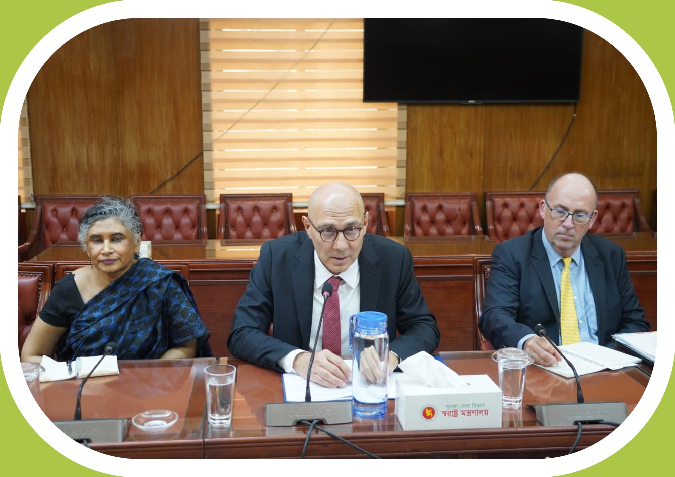 স্বরাষ্ট্র উপদেষ্টার নেতৃত্বে দ্বিপাক্ষিক বৈঠকে বাংলাদেশ প্রতিনিধিদলে ছিলেন স্বরাষ্ট্র মন্ত্রণালয়ের জননিরাপত্তা বিভাগের সিনিয়র সচিব ড. মোহাম্মদ আবদুল মোমেন, পুলিশ মহাপরিদর্শক মোঃ ময়নুল ইসলাম এনডিসি, বিজিবি'র মহাপরিচালক মেজর জেনারেল মোহাম্মদ আশরাফুজ্জামান সিদ্দিকী, র্যাপিড অ্যাকশন ব্যাটালিয়ন এর মহাপরিচালক এ কে এম শহিদুর রহমান, ডিএমপি কমিশনার মোঃ মাইনুল হাসান এনডিসি, জননিরাপত্তা বিভাগের অতিরিক্ত সচিব আবু হেনা মোস্তফা জামান প্রমুখ।