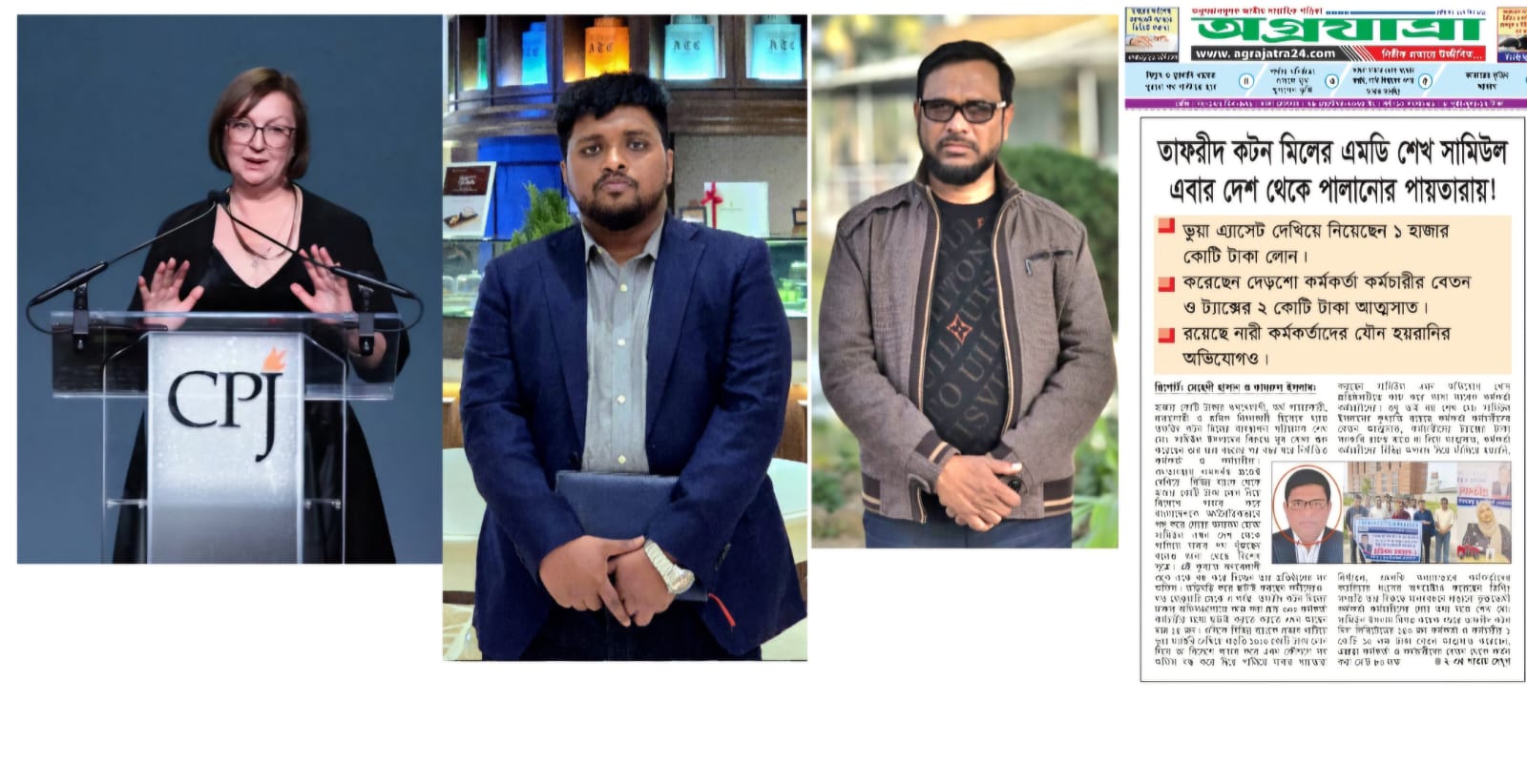 গত ১৭ ফেব্রুয়ারী (সোমবার) সংস্থাটির নিউ ইয়র্কে অবস্থিত সদর দপ্তর থেকে ওয়েবসাইটে এ বিবৃতি প্রকাশ করা হয়৷ মার্কিন এ গণমাধ্যম সংস্থাটি বিশ্বব্যাপি সাংবাদিকদের সুরক্ষা নিশ্চিতে কাজ করে থাকে৷ উল্লেখ্য, ব্যাংক খাতে লুটপাট চালিয়ে দেশ থেকে পালানোর পায়তারা করা কুখ্যাত ঋণখেলাপী ও শ্রমিকদের হয়রানিকারী তফরিদ কটন মিলের এমডি সামিউল ইসলামের দেশ থেকে পালানোর চেষ্টা ও শ্রমিক এবং নারী কর্মীকে হয়রানির তথ্য নিয়ে অগ্রযাত্রায় প্রতিবেদন প্রকাশ করায় বিভিন্ন পাওনাদার ব্যাংক কর্তৃপক্ষ হানা দেয় ঋণখেলাপী সামিউল ইসলামের বিভিন্ন প্রতিষ্ঠানে।
