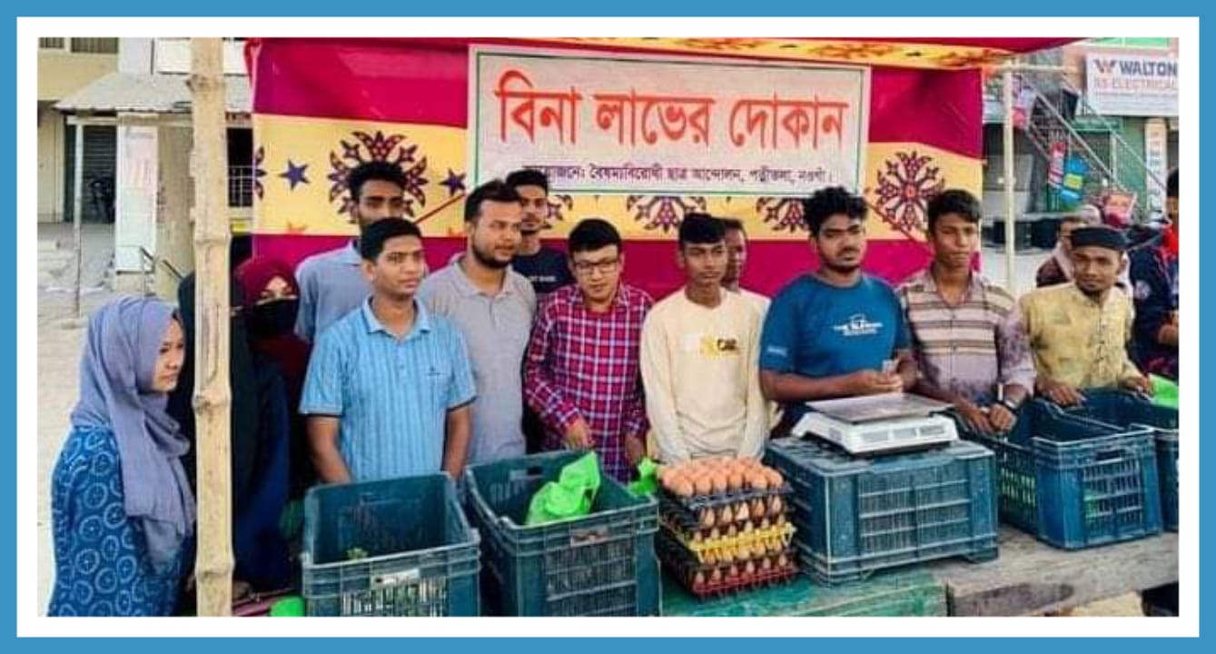বাজারে এগুলোর দাম অনেক বেশি। আরেক ক্রেতা সারমিন আক্তার বলেন, নিত্যপ্রয়োজনীয় পণ্যের মূল্য সাধারণ মানুষের ক্রয় ক্ষমতার বাইরে চলে গেছে। এ অবস্থায় শিক্ষার্থীদের এই উদ্যোগ অবশ্যই প্রশংসনীয়। বৈষম্যবিরোধী ছাত্র আন্দোলনের পত্নীতলা উপজেলা শাখার অন্যতম সদস্য মারুফ মোস্তফা বলেন, বৈষম্যবিরোধী ছাত্র আন্দোলনের পক্ষ থেকে ‘বিনা লাভের দোকান’ চালু করা হয়েছে। ছাত্ররা এই কার্যক্রমে অংশ নিয়েছে। বাজারে দ্রব্যমূল্যের ঊর্ধ্বগতির সিন্ডিকেট ভাঙতে আমাদের এই উদ্যোগ ।