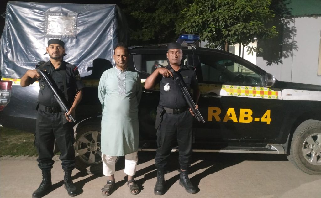 ১৭ নভেম্বর রাতে ধামরাই বাজার এলাকায় অভিযান পরিচালনা করে তাকে গ্ৰেফতার করা হয়।