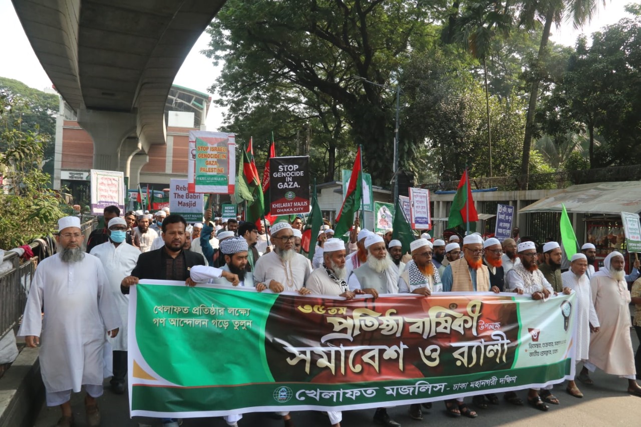 আজ ৬ ডিসেম্বর ২০২৪, শুক্রবার, সকাল ১০টায় জাতীয় প্রেস ক্লাবের সামনে শাখা সভাপতি অধ্যাপক মাওলানা আজীজুল হকের সভাপতিত্বে ও সাধারণ সম্পাদক মো: আবুল হোসেনের পরিচালনায় অনুষ্ঠিত র্যালী পূর্ব সমাবেশে বিশেষ অতিথির বক্তব্য রাখেন সংগঠনের যুগ্মমহাসচিব অধ্যাপক মো: আবদুল জলিল। অন্যান্যের মধ্যে বক্তব্য দেন বিশিষ্ট আলেমে দ্বীন শায়খুল হাদিস মাওলানা আব্দুস সামাদ, কেন্দ্রীয় নির্বাহী সদস্য হাজী নূর হোসেন, হাফেজ মাওলানা নুরুল হক, শ্রমিক মজলিসের কেন্দ্রীয় সভাপতি প্রভাষক মুহাম্মদ আবদুল করিম, ঢাকা মহানগরী সহ-সাধারণ সম্পাদক কাজী আরিফুর রহমান, সাংগঠনিক সম্পাদক মুনশি মোস্তাফিজুর রহমান ইরান, সরদার নেয়ামত উল্লাহ, ইসলামী ছাত্র মজলিস ঢাকা মহানগরী দক্ষিণ সভাপতি মুহাম্মদ সাইফ উদ্দীন, শ্রমিক মজলিস ঢাকা মহানগরী উত্তর সভাপতি ইঞ্জিনিয়ার মতিউর রহমান, মাওলানা ফরিদ আহমদ হেলালী, মাওলানা শরীফ উদ্দিন, ড. মাওলানা মারুফ বিল্লাহ, এডভোকেট এনায়েত রাব্বি একরাম ।