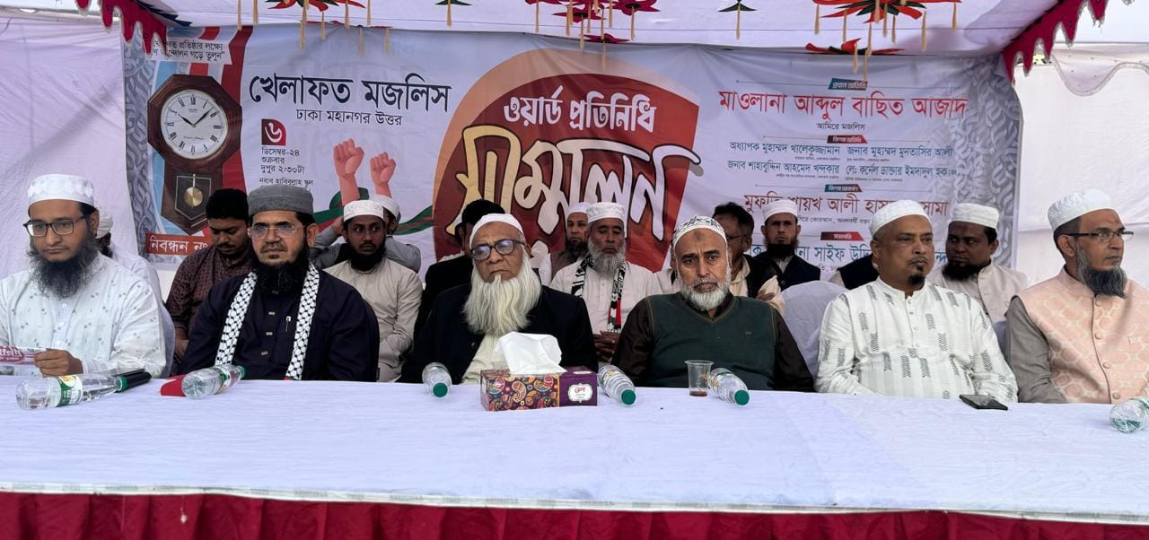 খেলাফত মজলিস ঢাকা মহানগর উত্তর সভাপতি অধ্যাপক মাওলানা সাইফ উদ্দিন আহমেদ খন্দকারের সভাপতিত্ব অনুষ্ঠিত ওয়ার্ড প্রতিনিধি সম্মেলনে বিশেষ অতিথি হিসেবে উপস্থিত ছিলেন নায়েবে আমির অধ্যাপক মোঃ খালেকুজ্জামান, যুগ্ম মহাসচিব মুহাম্মদ মুনতাসির আলী। কেন্দ্রীয় সহ-সাংগঠনিক সম্পাদক শাহাবুদ্দিন আহমেদ খন্দকার।