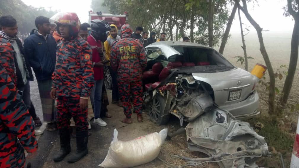 দুর্ঘটনায় নিহতরা হলেন – জেলার সাপাহার উপজেলার চৌধুরীপাড়া এলাকার এনামুল হকের ছেলে আলভী রাব্বানী জিহান (৩২) ও আ. জব্বারের ছেলে মাহিন আহমেদ সাগর (২৭)। স্থানীয় সূত্রে জানা যায়, প্রাইভেটকারটি রাজশাহী থেকে নওগাঁর দিকে আসছিল।