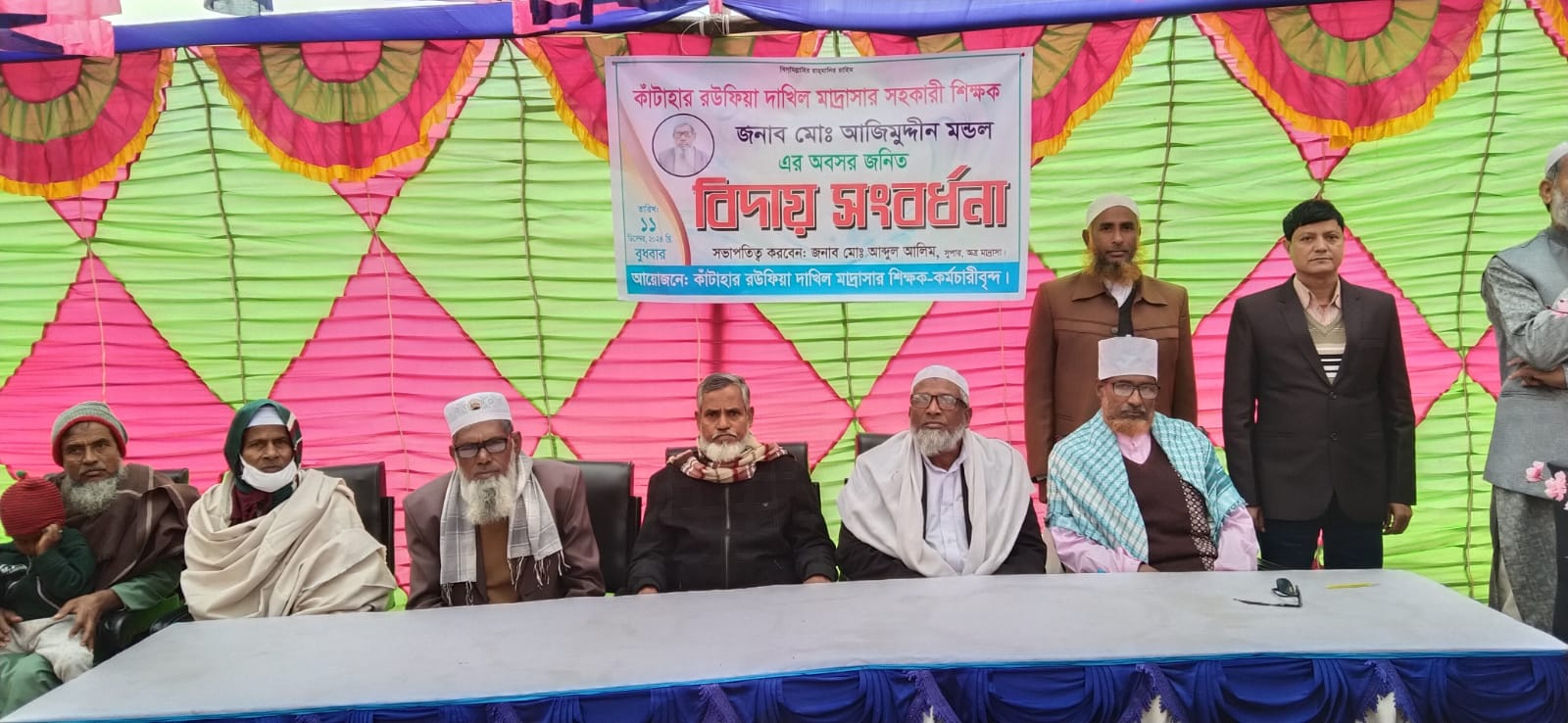 জয়পুরহাটের কালাই উপজেলার মাত্রাই ইউনিয়নের কাটার রউফিয়া দাখিল মাদ্রাসার শিক্ষক ও কর্মচারীগনের আয়োজনে ১১ই ডিসেম্বর ২০২৪ বুধবার দুপুর ১২ টায় অত্র মাদ্রাসার মাঠ প্রাঙ্গণে কাটার রউফিয়া দাখিল মাদ্রাসার সুপার আব্দুল আলিম এর সভাপতিত্বে সহকারি শিক্ষক আজিমুদ্দিন মন্ডলের বিদায় সংবর্ধনা অনুষ্ঠান অনুষ্ঠিত হয়। স্বাগত বক্তব্য রাখেন সহ সুপার মাওলানা আব্দুল মালেক।
