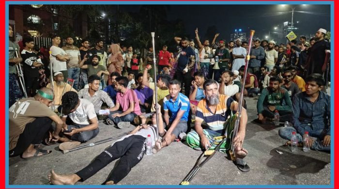 রাজধানীর আগারগাঁও থেকে শ্যামলীমুখী সড়ক বন্ধ করে রাতেও আন্দোলন করছেন জাতীয় অর্থোপেডিক হাসপাতাল ও পুনর্বাসন প্রতিষ্ঠানে (নিটোর) চিকিৎসাধীন স্বৈরাচারবিরোধী আন্দোলনে আহতরা। বুধবার রাত ৯টার পরও পঙ্গু হাসপাতালের সামনের রাস্তায় বসে