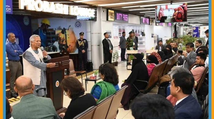 প্রধান উপদেষ্টা ড. মুহাম্মদ ইউনূস আজ সোমবার রাজধানীর হজরত শাহজালাল আন্তর্জাতিক বিমানবন্দরে প্রবাসী শ্রমিকদের জন্য বিশেষ একটি লাউঞ্জ উদ্বোধন করেছেন। এ সময় ড. ইউনূস বলেন, ‘আমাদের প্রবাসী শ্রমিকেরা দেশ গড়ার