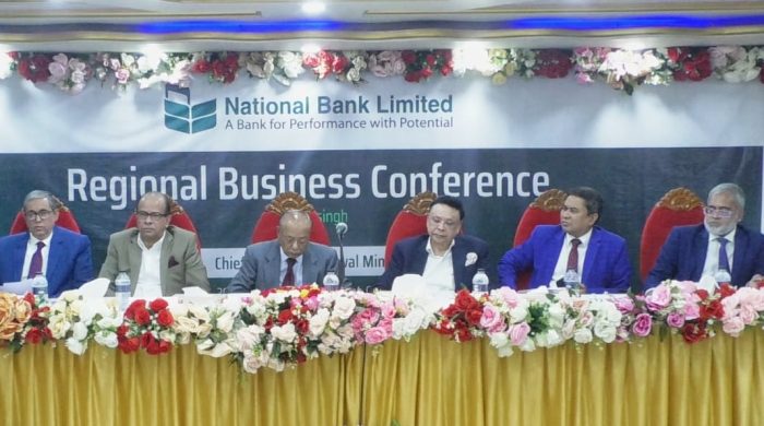 ন্যাশনাল ব্যাংক লিমিটেডের আঞ্চলিক ব্যবসায়িক সম্মেলন (ময়মনসিংহ) অনুষ্ঠিত হয়েছে গত শনিবার, ৭ ডিসেম্বর ২০২৪, ময়মনসিংহের সূর্যদীপ কনভেনশন সেন্টারে। অনুষ্ঠানে প্রধান অতিথি ছিলেন ন্যাশনাল ব্যাংকের চেয়ারম্যান আবদুল আউয়াল মিন্টু। সম্মেলনে পরিচালনা