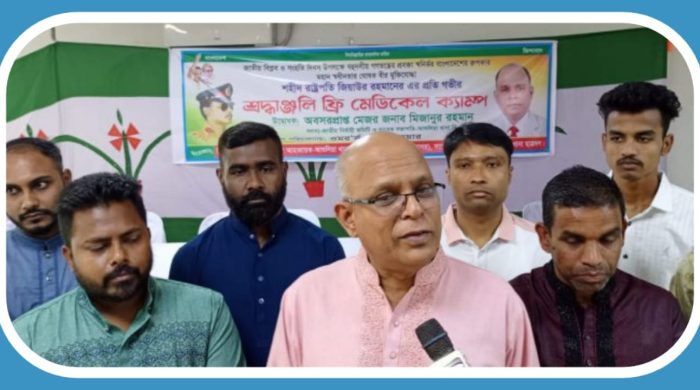 ঢাকা জেলার আশুলিয়া থানা পল্লী বিদ্যুৎ এলাকায় মিজান গার্ডেনে সকাল ১০ টায় ফ্রি মেডিকেল ক্যাম্প উদ্বোধন করা হয়।এসময় মেজর মিজানুর রহমান মিজান দেশের বর্তমান সার্বিক বিষয় নিয়ে আলোচনা করেন। জাতীয়